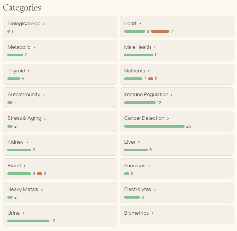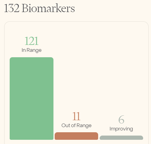 - 3 Comprehensive Biomarker Tests. One test now, one test in 6 months and one test in 12 months. You will receive results on over 100 biomarkers. See list below of what will be tested. ($1,000 Value)